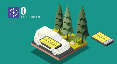 Die Animation illustriert den Weg einer ausgedienten E-Auto-Batterie durch den Prozess ihrer Wiederverwendung als Teil eines stationären Energiespeichers. Dank dieser neuen Nutzung können die Batterien, die nicht mehr für den Antrieb von Elektrofahrzeugen geeignet sind, einen entscheidenden Beitrag zur Integration erneuerbarer Energien und zur Netzstabilisierung leisten. Es wird verdeutlicht, wie Kommunen von diesen innovativen Energiespeicherlösungen profitieren können. Neben der effizienten Speicherung erneuerbarer Energien unterstützen sie den Ausbau der Ladeinfrastruktur, sichern die Stromversorgung und versorgen Wohngebiete nachhaltig mit grüner Energie.